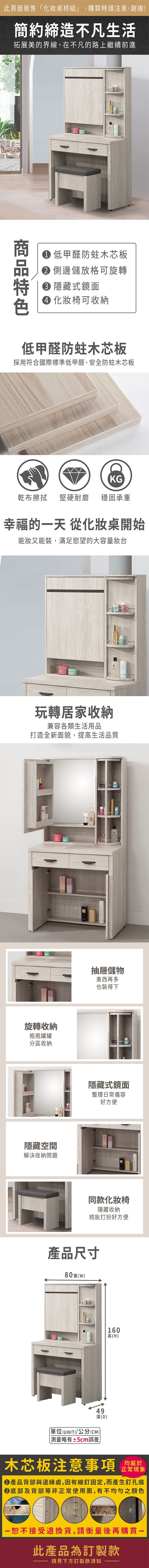 ASSARI-仙妮絲2.7尺旋轉化妝桌椅組(寬80x深49x高160cm)