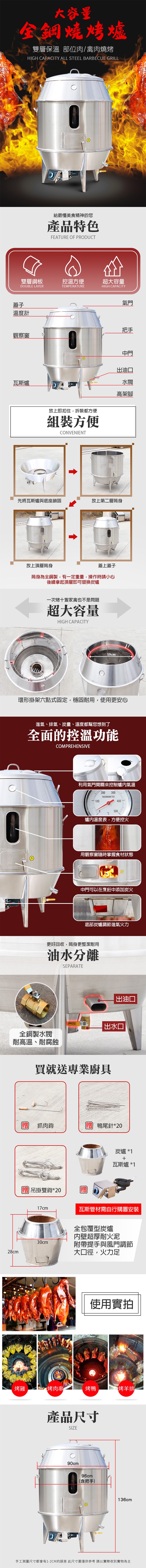✔內置溫度計,最高可達500度,包辦所有烤肉種類