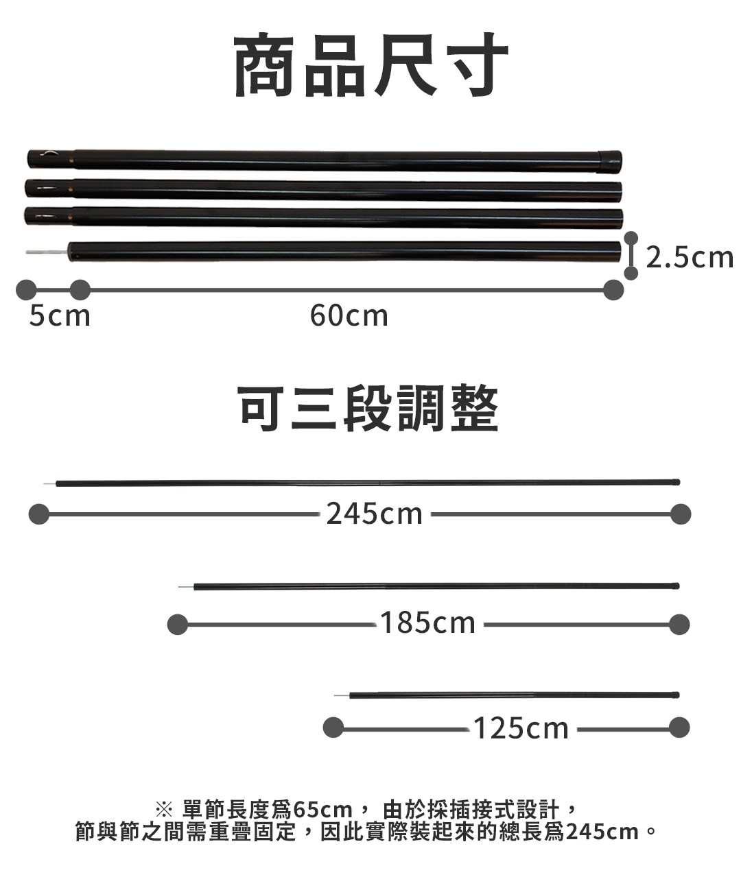商品內容:彈扣式4節-總長240cm鐵製撐桿 x 2根