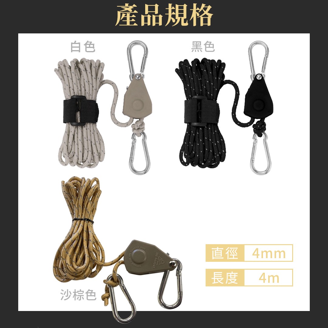 【LIFECODE】懶人營繩滑輪調節器4米(小款) 4入-