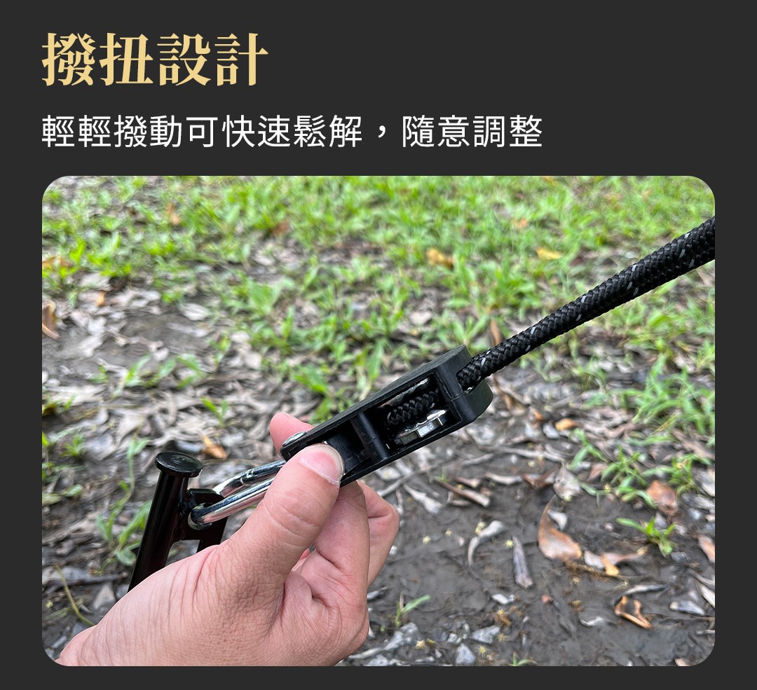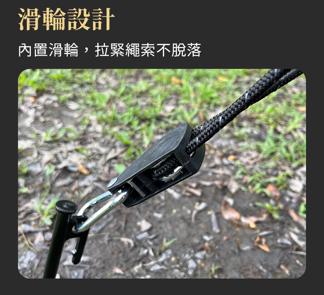 ◆ 滑輪設計,輕拉即可束緊繩索,牢牢固定