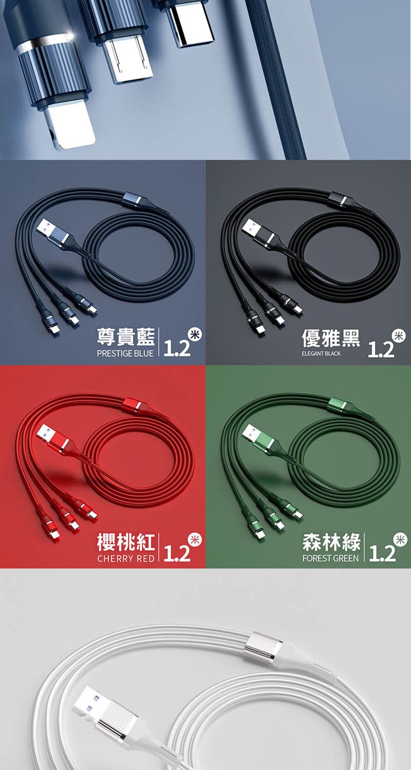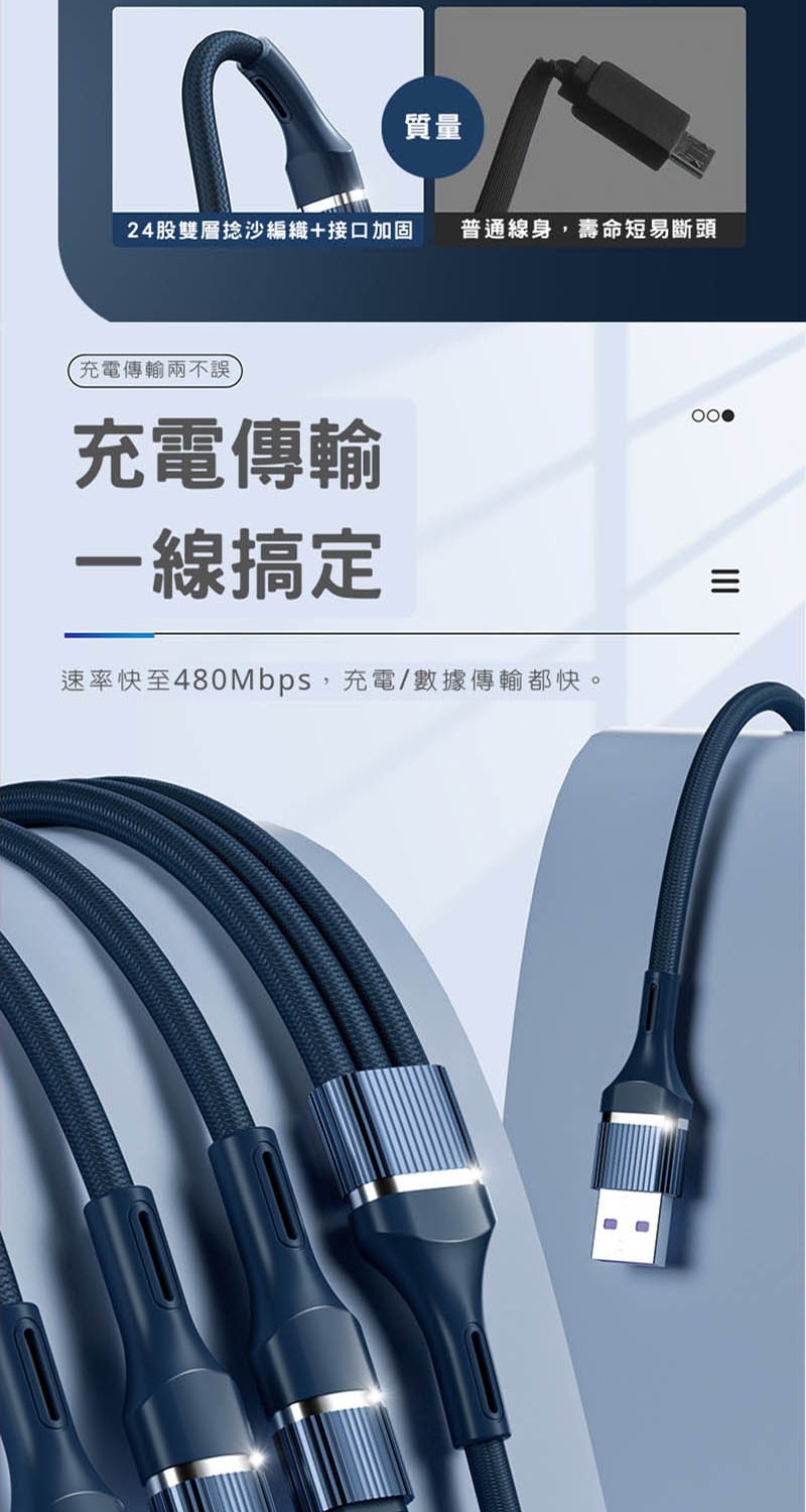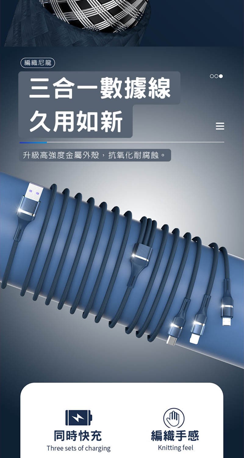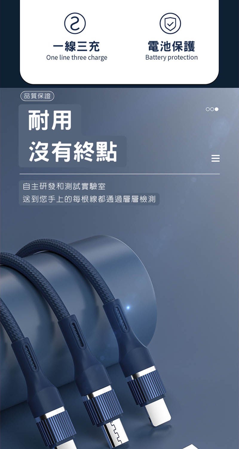 三合一快充充電線傳輸線(充電傳輸一線搞定)尊貴藍