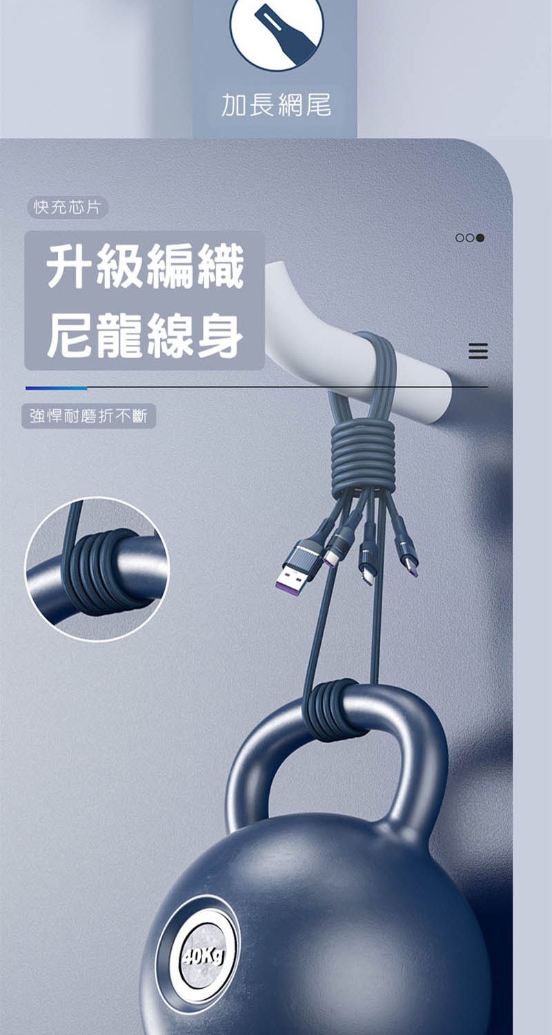 三合一快充充電線傳輸線(充電傳輸一線搞定)尊貴藍