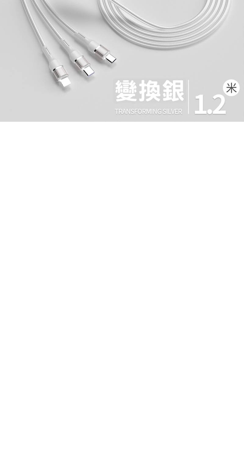 HANG 方便 三合一抗彎折2.6A充電線 支援 Lightning/Micro USB/Type-C 充電線-100CM