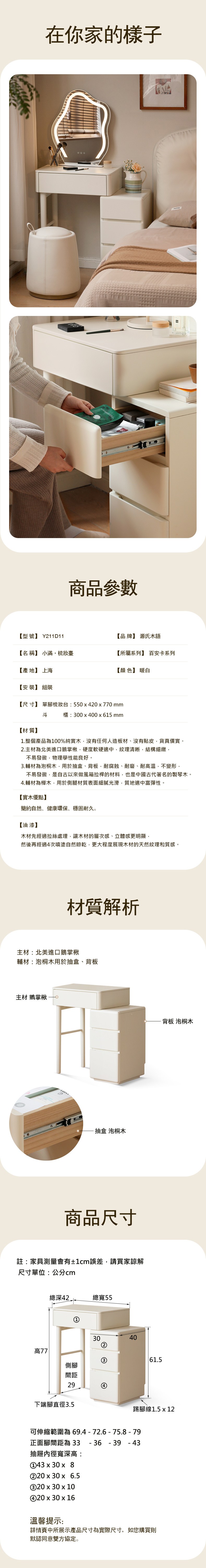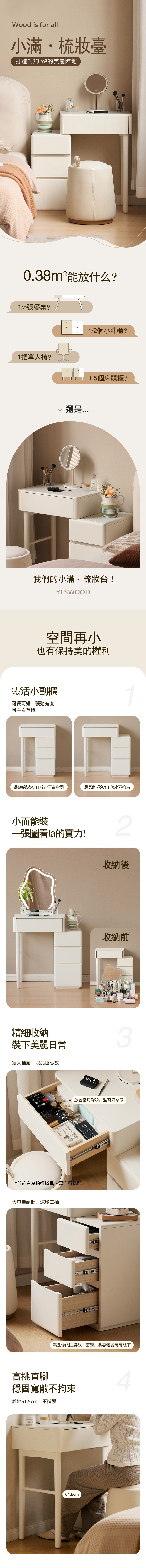 *注意:以下為情境示意圖,實際商品款式為小滿奶油風實木原木色伸縮化妝桌櫃0.79M Y246D03(不含鏡)