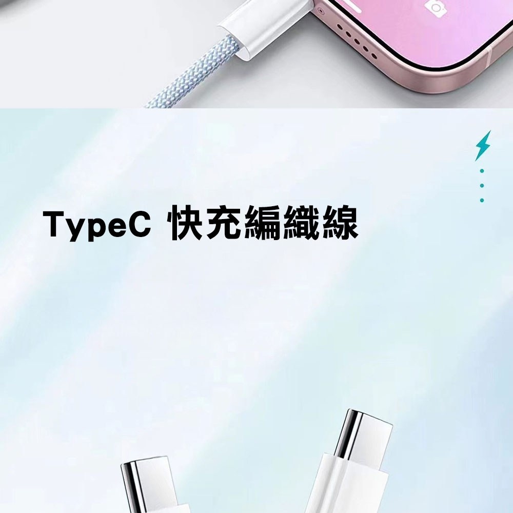 Type-C-Type-C 蘋果彩色编織快充線 100cm 青綠色 1條