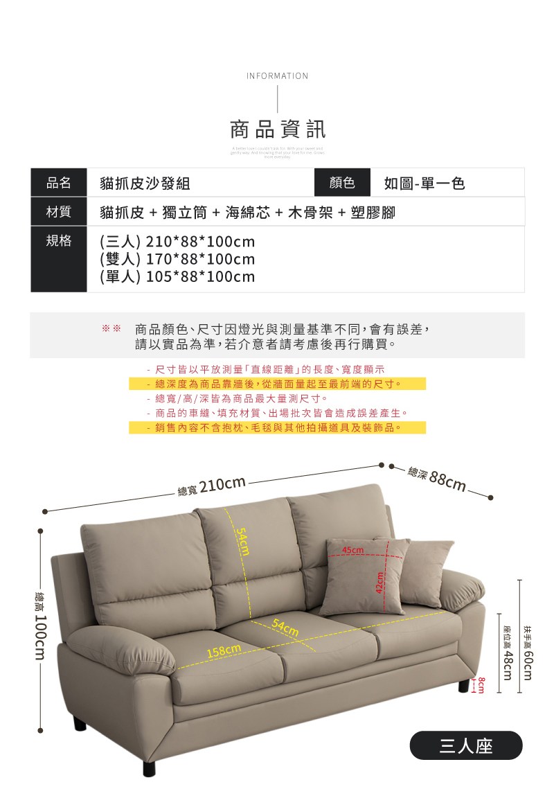 【IDEA】EO極簡獨立筒貓抓皮雙人沙發