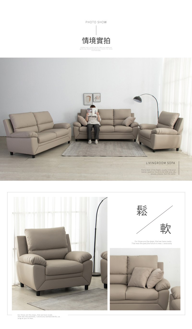 Homelike 喜家居三人座抓皮沙發(2036)