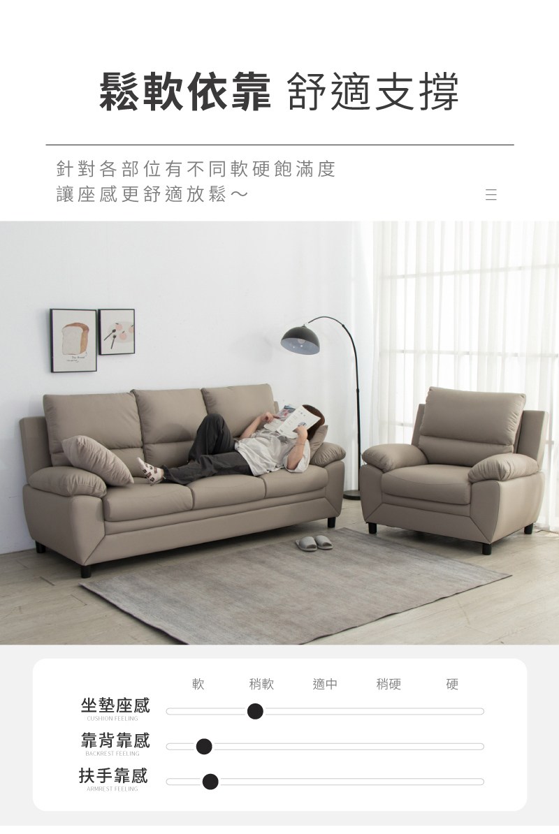 傢俱工場-星辰 厚實飽滿 貓抓皮獨立筒沙發 1+3人座淺灰#6741