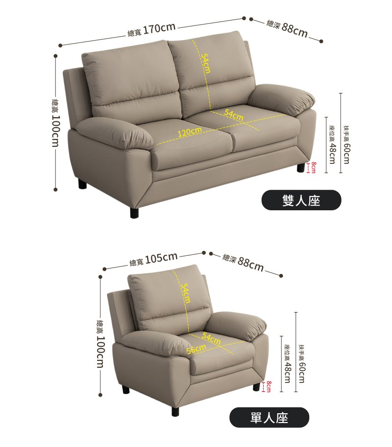 ASSARI-薰伊高背支撐雙人座貓抓皮沙發雙色款