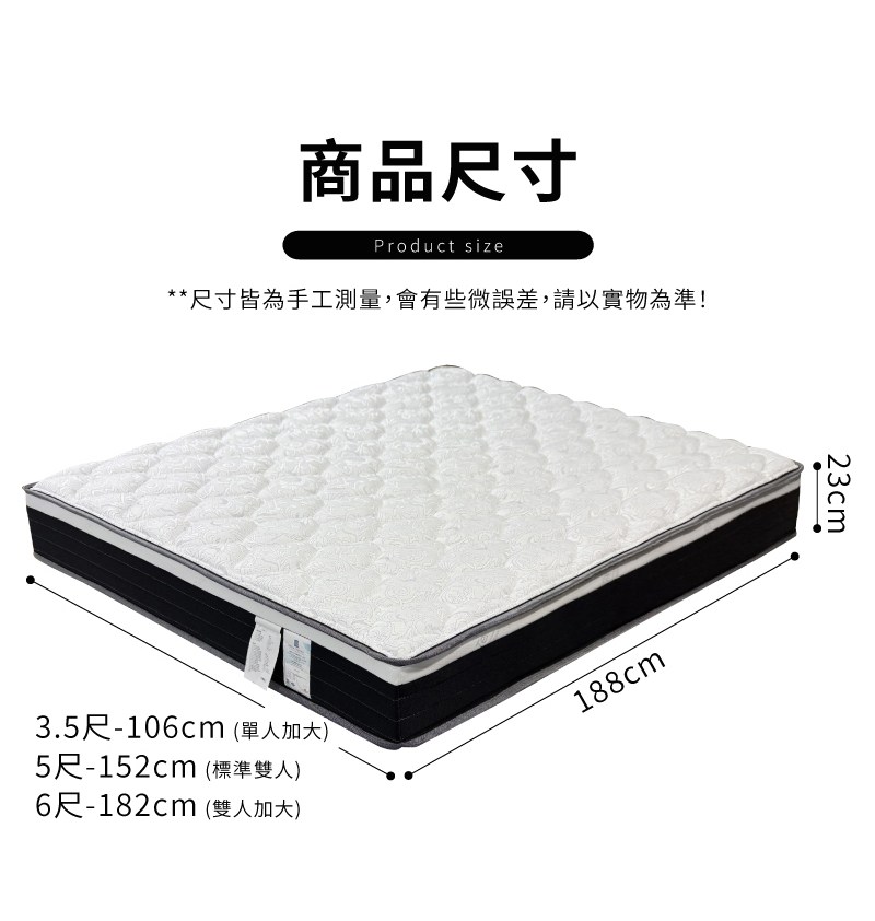 MG珍寶-飯店用-護腰型-乳膠抗菌硬式獨立筒床墊-雙人加大6尺