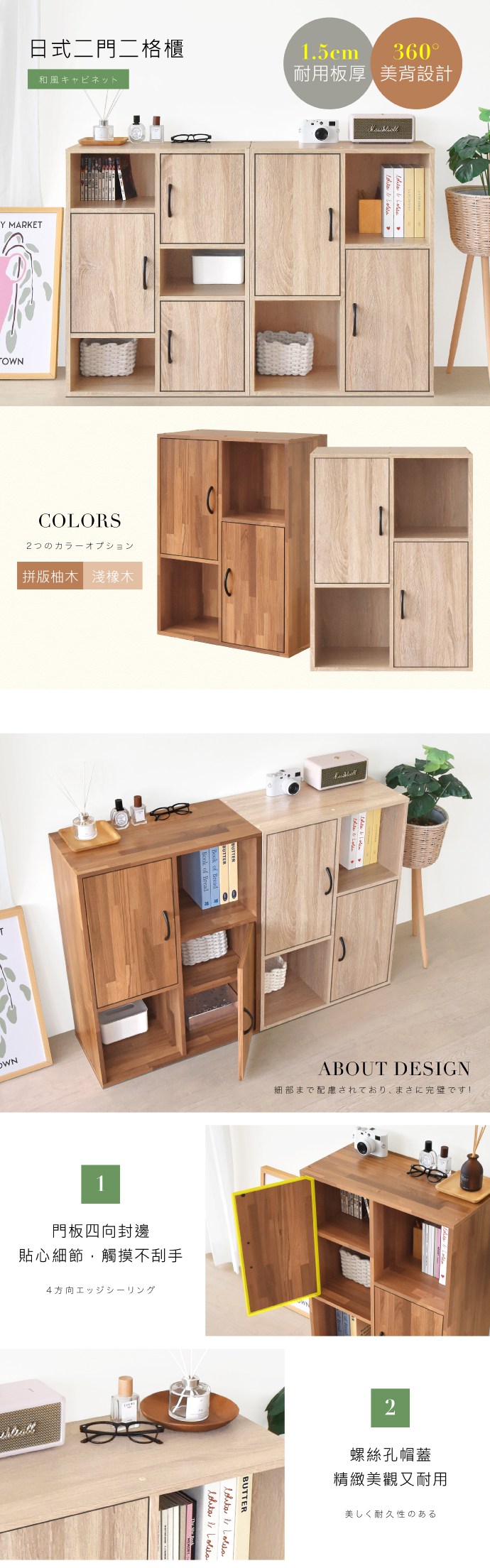 《HOPMA》日式二門二格櫃 台灣製造 收納櫃 置物櫃 書櫃 櫃子-拼版柚木
