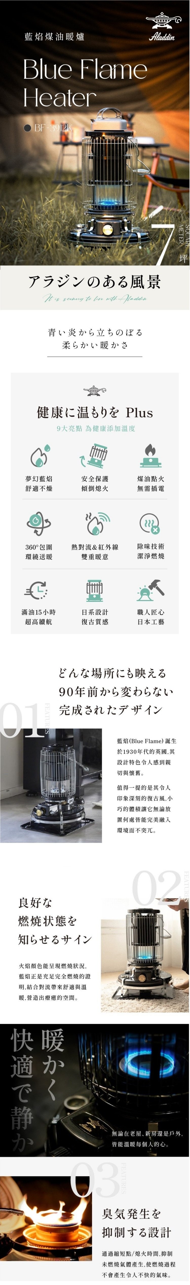 【日本ALADDIN 阿拉丁】日本手工製 經典復古款 煤油暖爐/煤油爐 BF-3912K 黑色