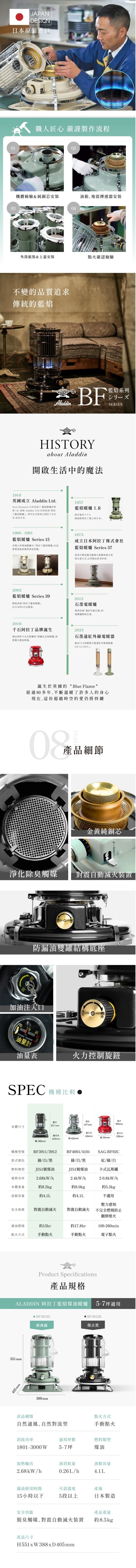 【日本ALADDIN 阿拉丁】日本手工製 經典復古款 煤油暖爐/煤油爐 BF-3912G 綠色