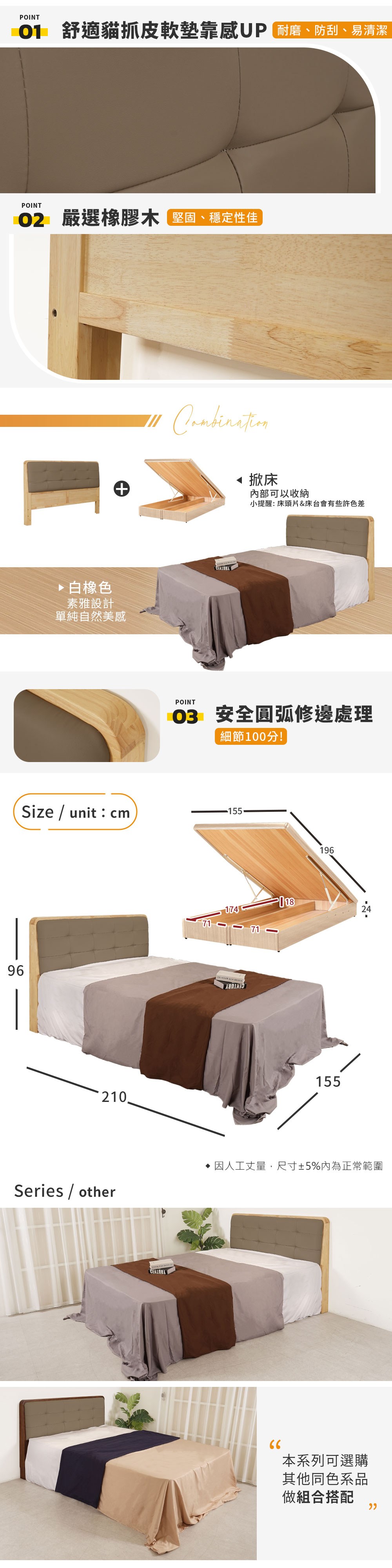 【KIKY】凱特耐磨貓抓皮靠墊二件床組雙人5尺(床頭片+掀床底)