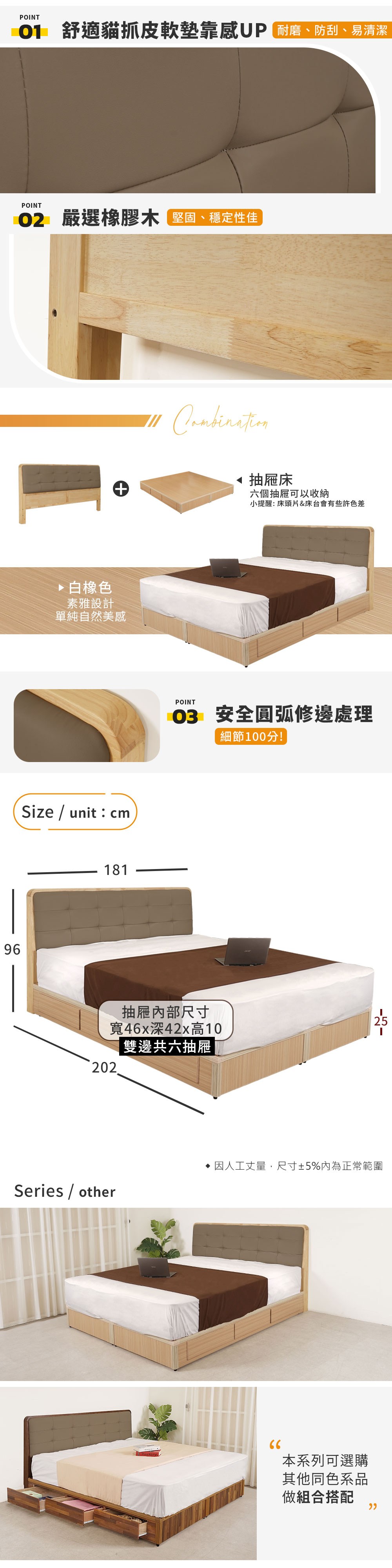 Homelike 喜家居雙人加大6尺六抽屜床組-原木色(2531)
