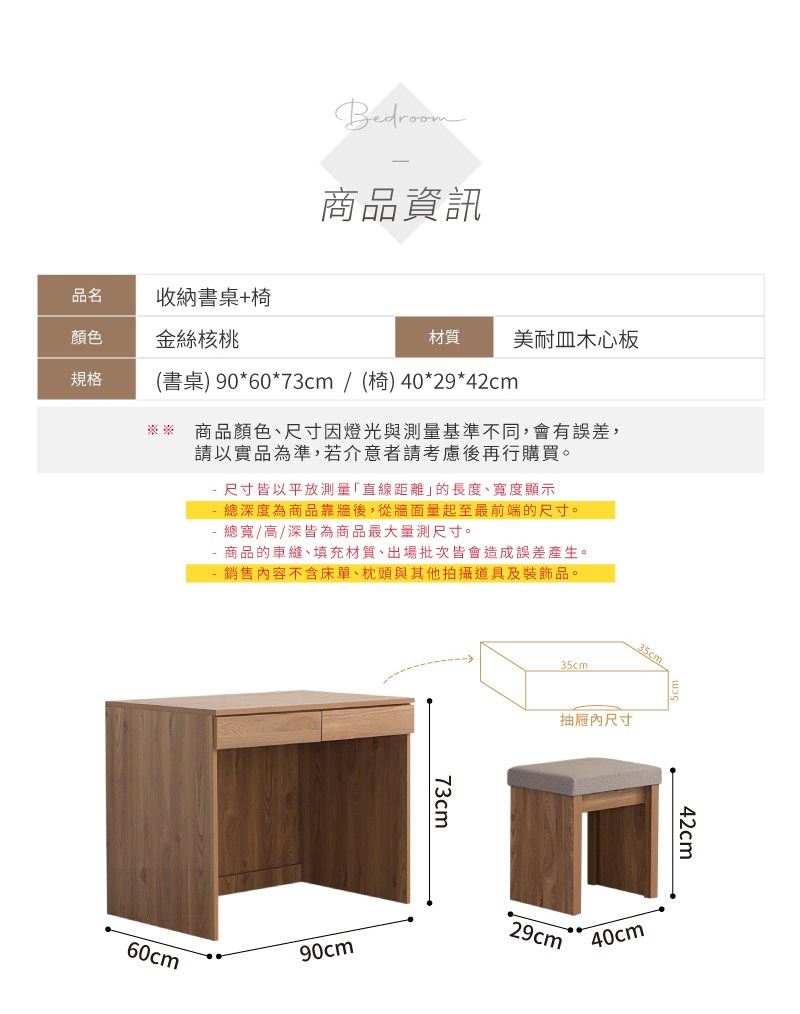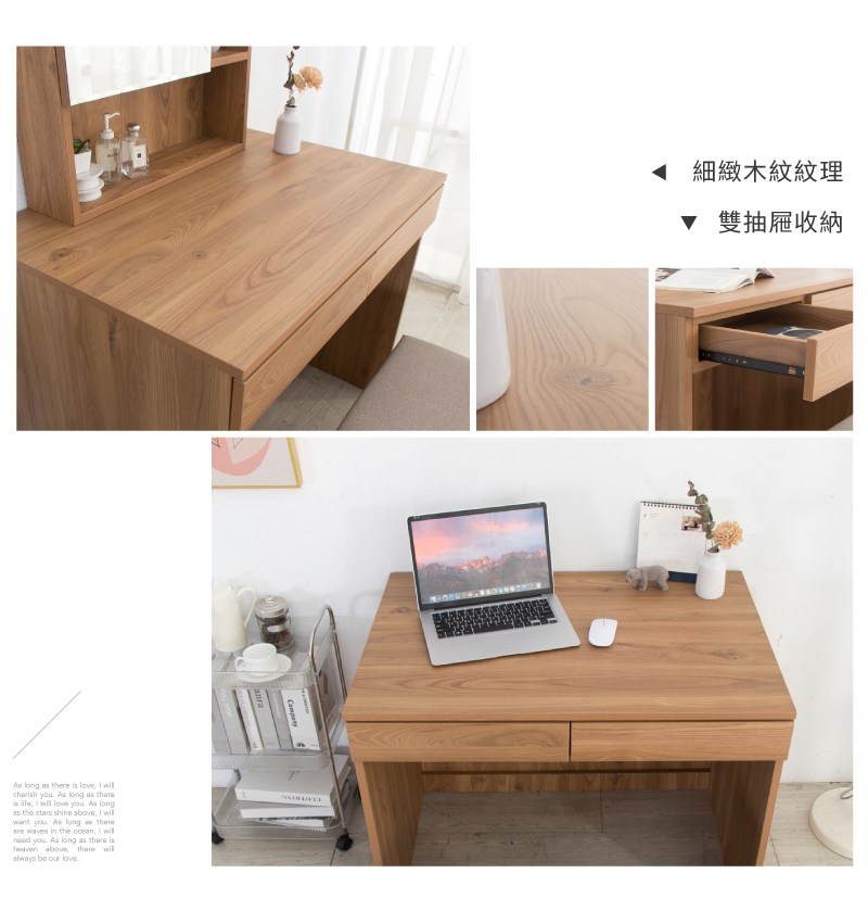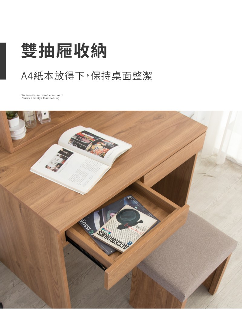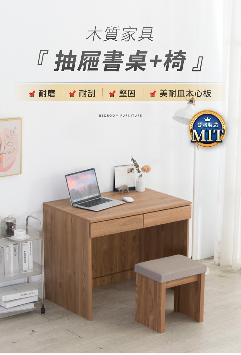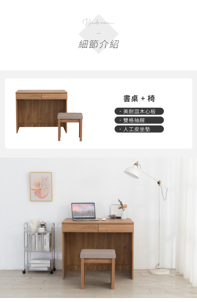 【IDEA】理亞實木雙抽置物收納書桌椅組合/辦公桌椅組合(電腦桌/化妝桌)
