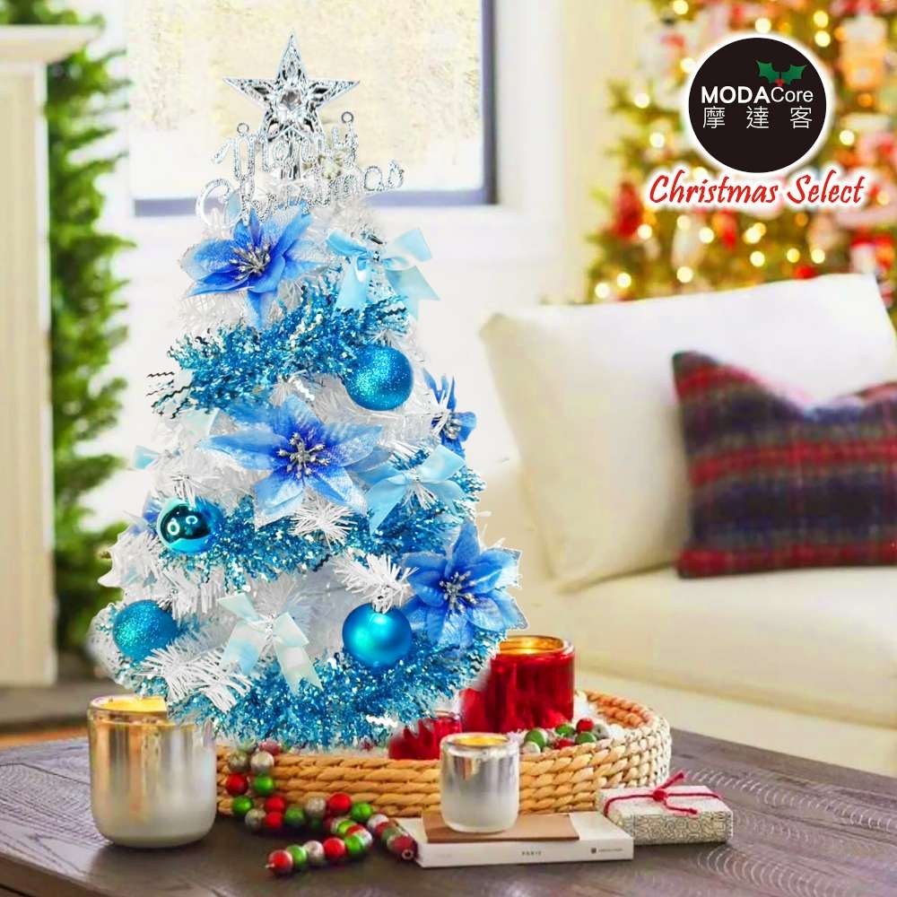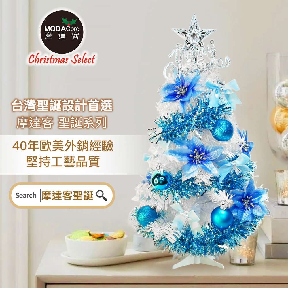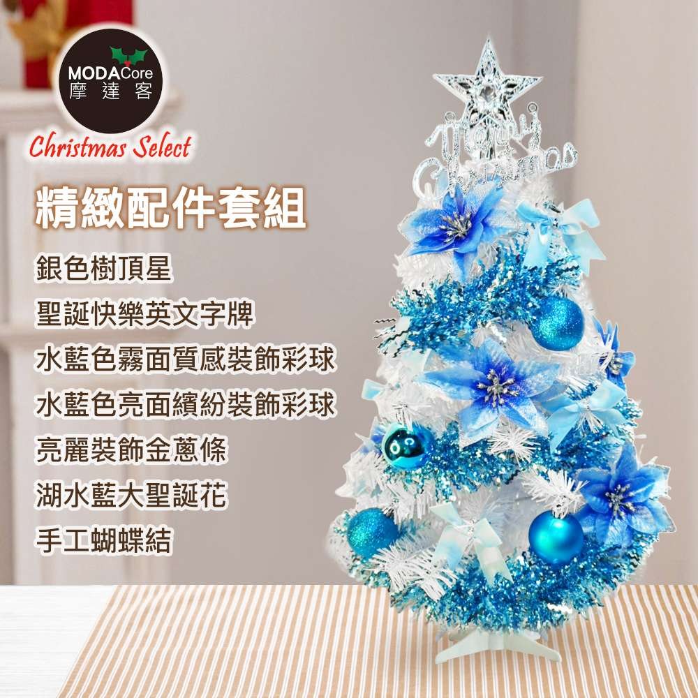 摩達客耶誕-台灣製5呎/5尺(150cm)豪華版晶透藍系聖誕樹(銀藍系配件組)+100燈LED燈藍白光2串(附IC控制器)本島免運費