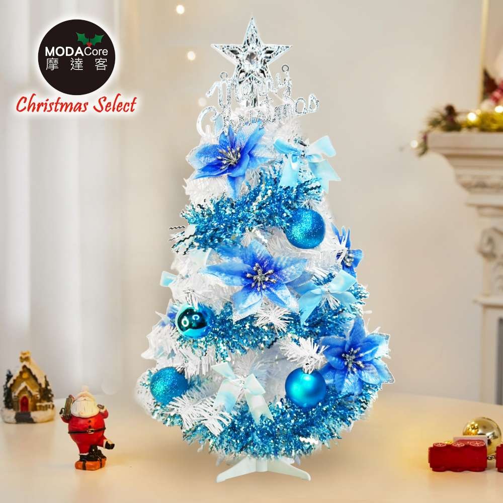 摩達客★台灣製迷你1呎/1尺(30cm)裝飾冰藍色聖誕樹 (銀藍松果系)(免組裝/本島免運費)