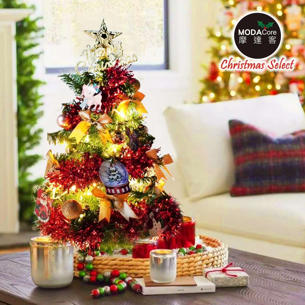 紅色松針葉聖誕樹 溫暖冬季耶誕裝飾 容易組裝 60cm 紅色+金色