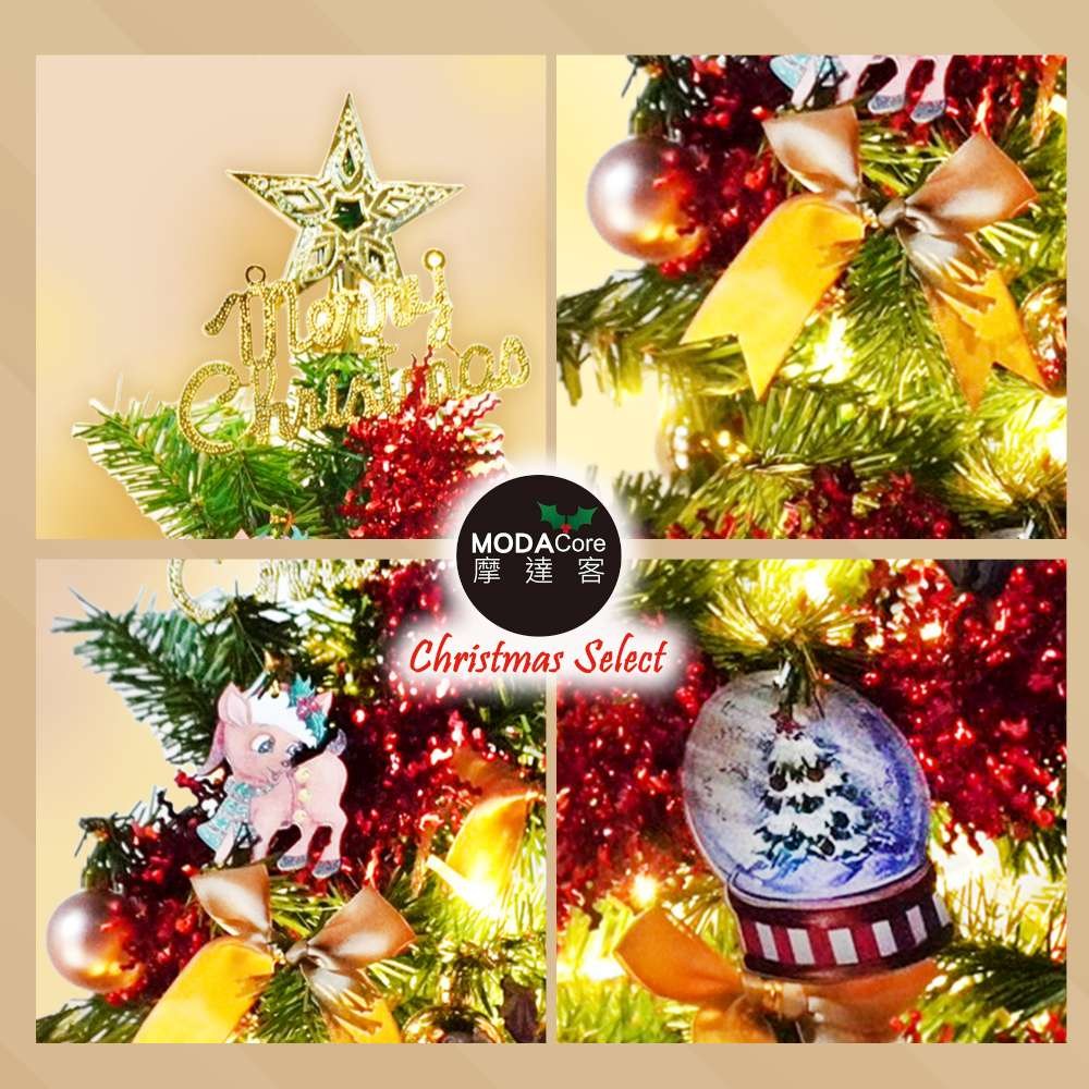 MODACore 摩達客 - 台灣製8呎/8尺(240cm)豪華版氣質霧金系聖誕樹(金色系配件組)+100燈LED燈暖白光3串(附...