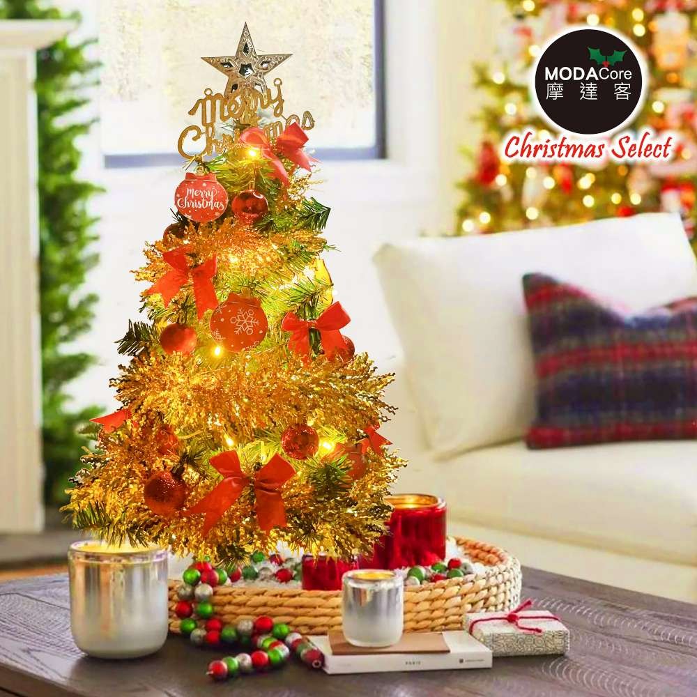 紅色松針葉聖誕樹 溫暖冬季耶誕裝飾 容易組裝 60cm 紅色+金色