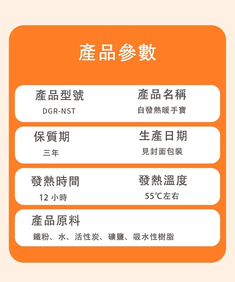 原料:鐵粉、水、活性炭、礦鹽、吸水性樹脂