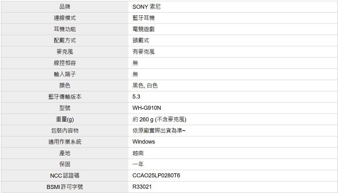 Sony 索尼 INZONE H9 II 無線降噪電競耳機 WH-G910N白色