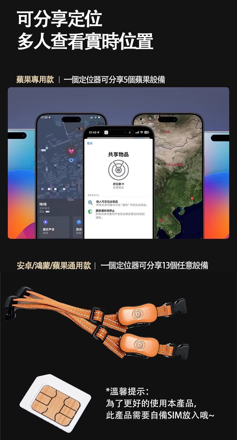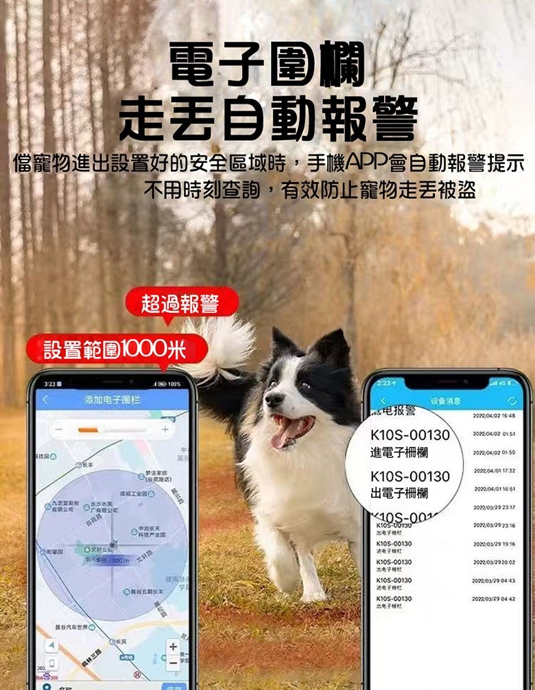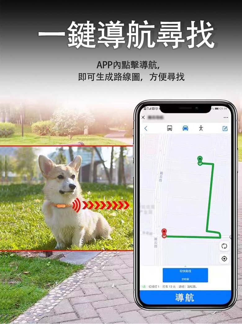 - 功能:實時精準定位、電子圍欄、歷史軌跡、低電報警、一鍵導航、響鈴尋找、遠程喚狗等