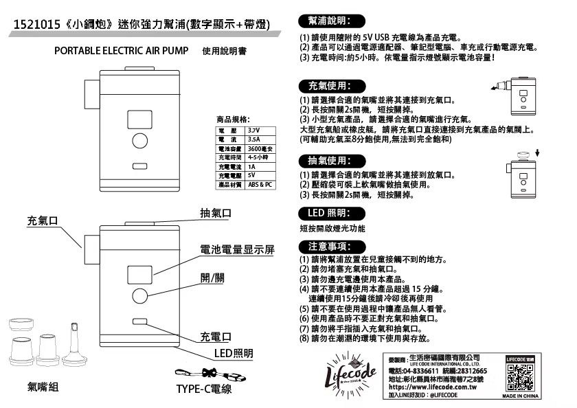 【LIFECODE】《小鋼炮》迷你強力幫浦(數字顯示+帶燈)