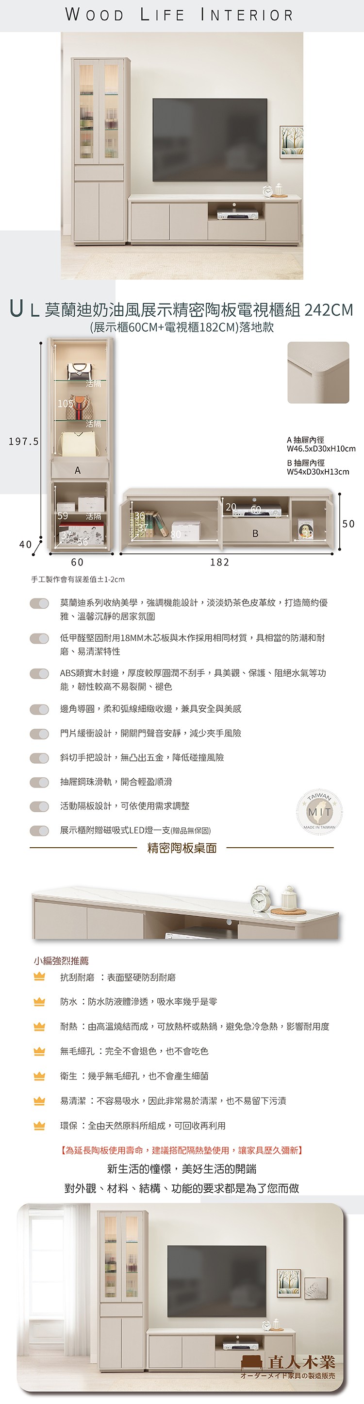 直人木業-UL莫蘭迪奶油風陶板電視櫃213公分