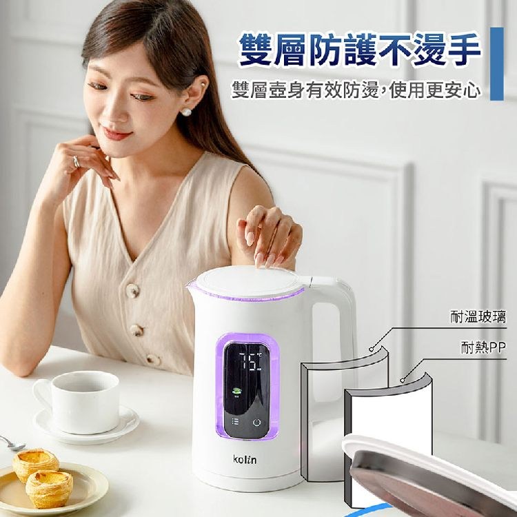 Kolin歌林 1.7公升智能溫控玻璃快煮壺 KPK-LN170G
