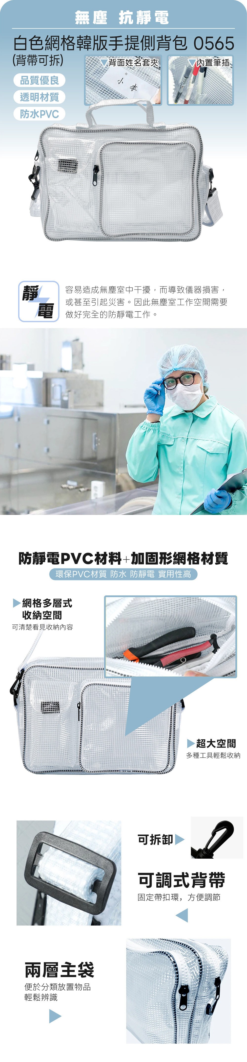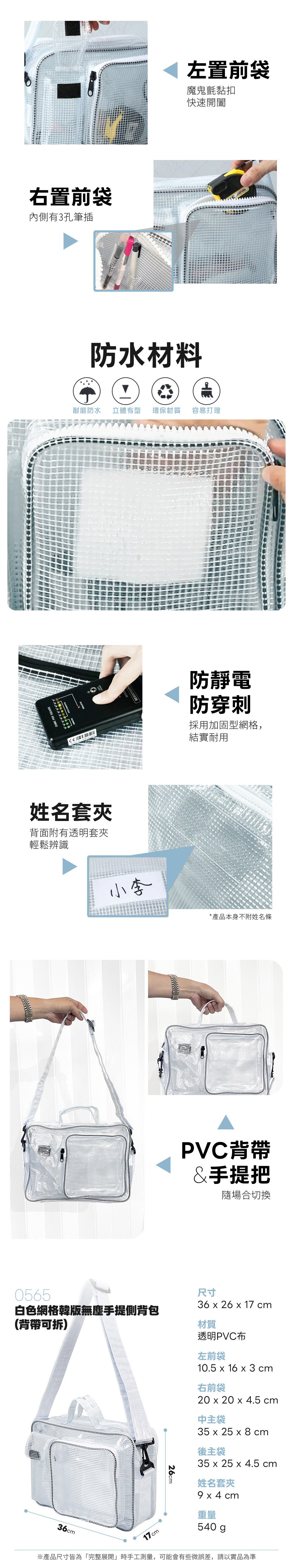 【大船回港】白色網格韓版無塵手提側背包(背帶可拆) 0565