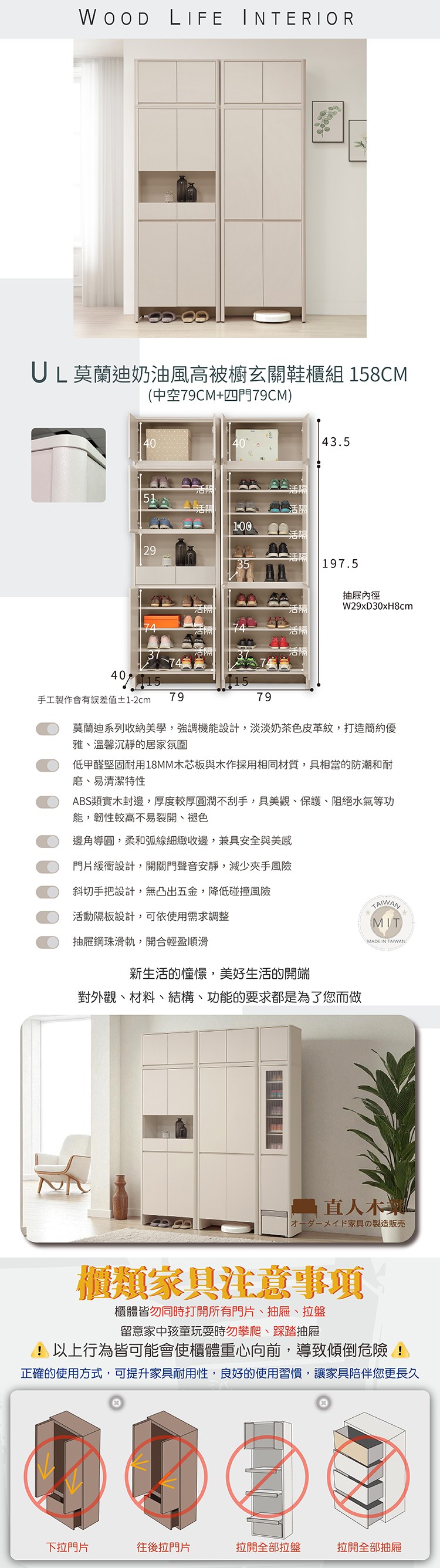 直人木業-RJ現代奶油風長門開門衣櫃組240公分(單吊+雙吊+三抽)