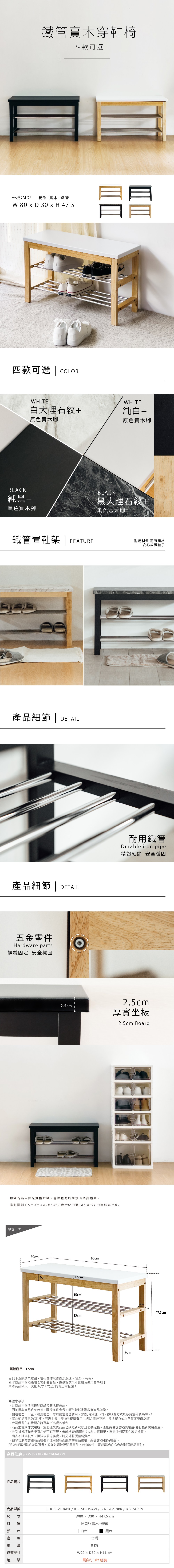 【RICHOME】大理石紋路穿鞋椅純黑色