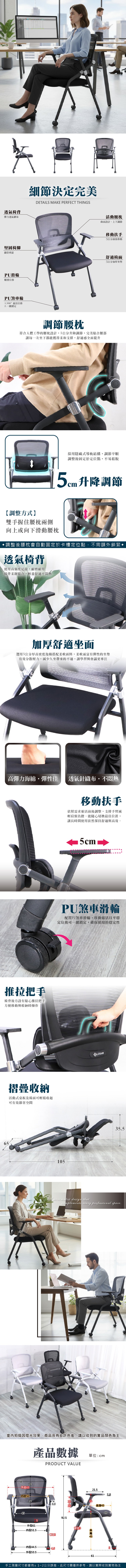 椅背後方設有貼心推拉把手,方便移動與收納時操作。