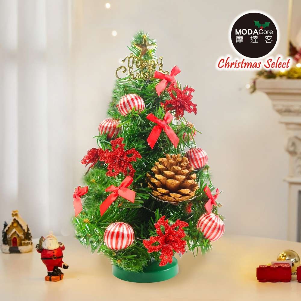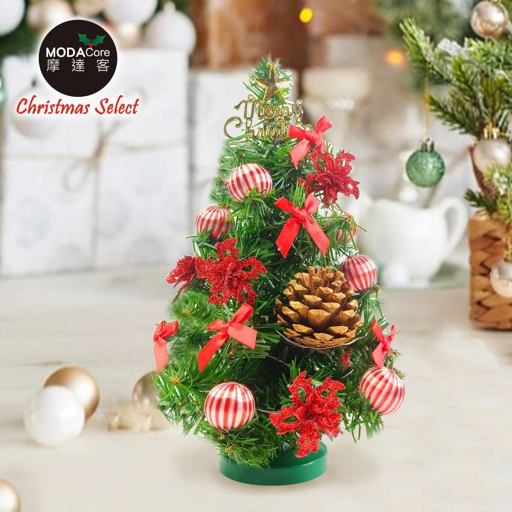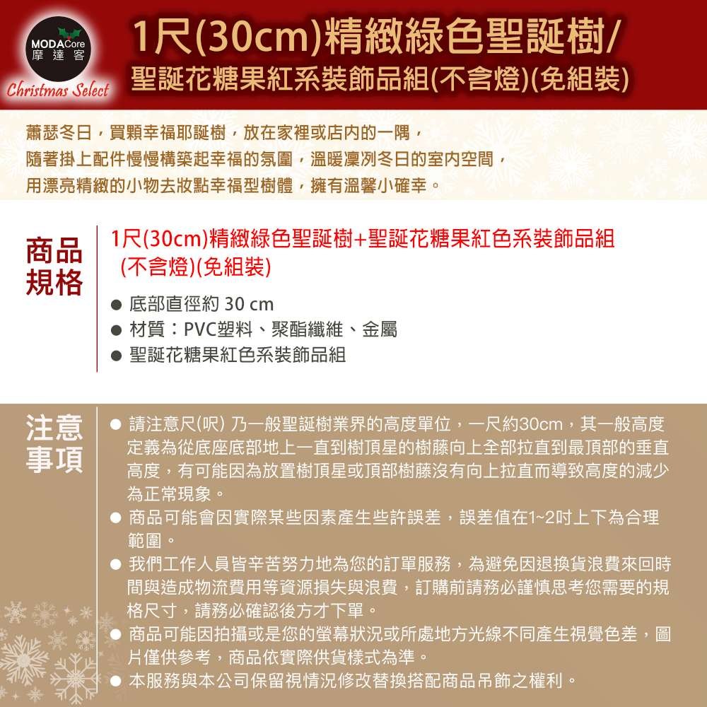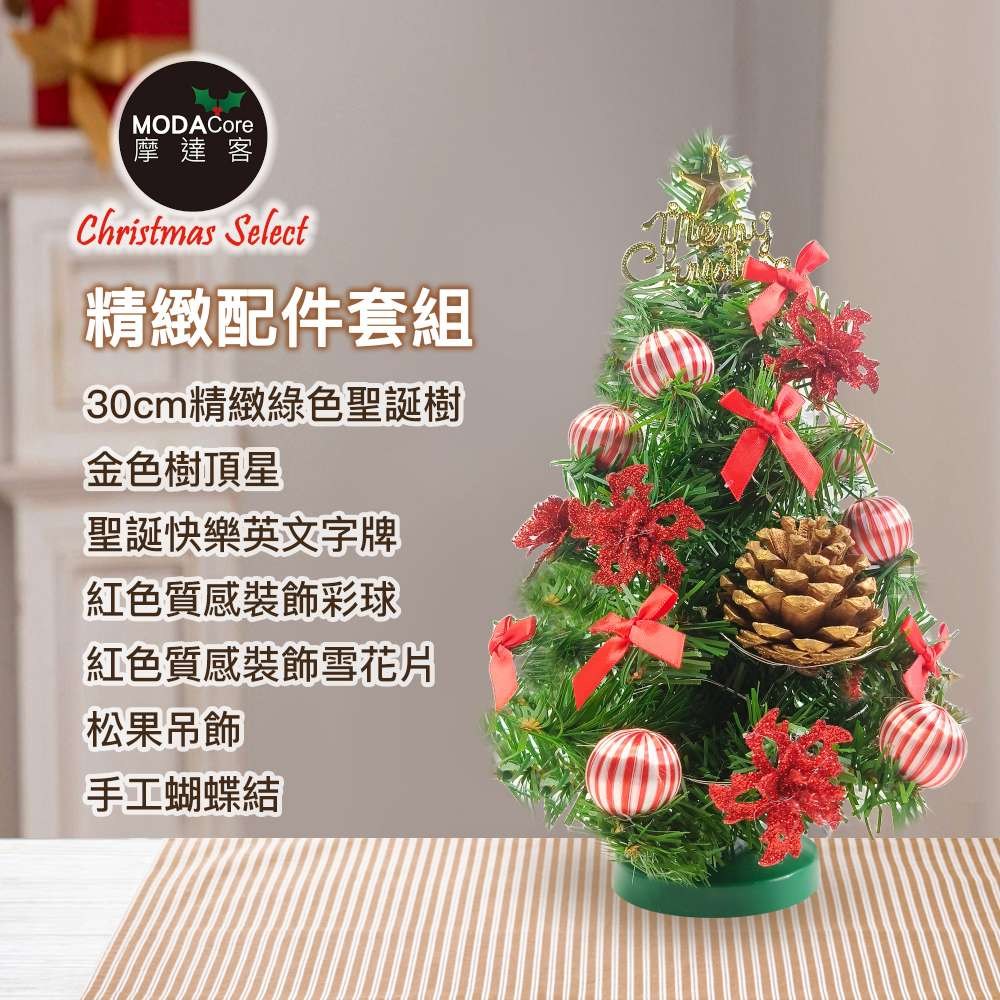 摩達客 台灣製1尺30cm精緻綠色聖誕樹+聖誕花糖果紅系裝飾品組 免組裝 本島免運費