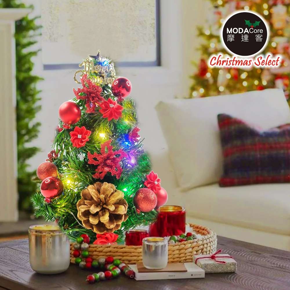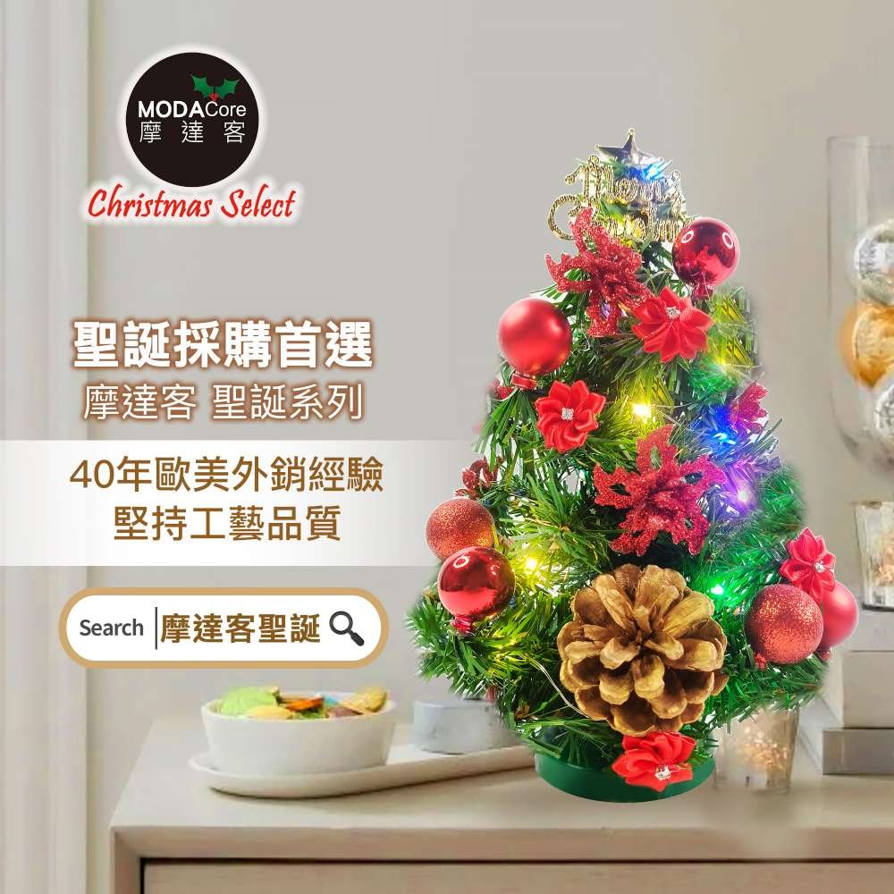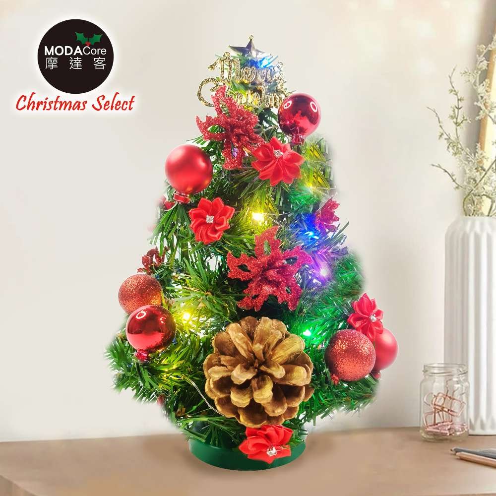 MODACore 摩達客 晶透迷你壓克力聖誕樹塔+50燈LED銅線燈電池燈 四彩光 1組 10 x 10 x 18cm