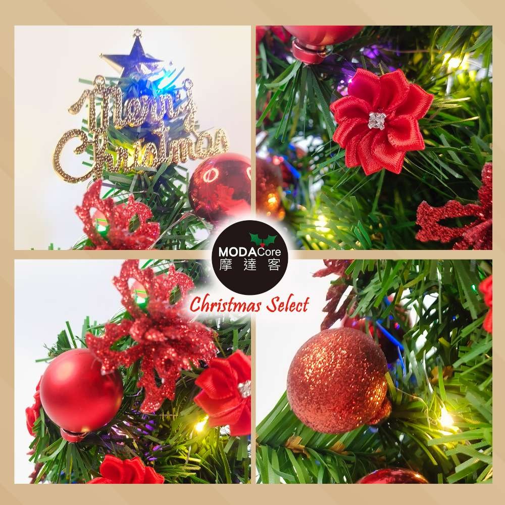 摩達客耶誕-台灣製7尺(210cm)特級綠松針葉聖誕樹+高級聖誕花蝴蝶結系配件+100燈LED燈暖白光2串(附控制器)豪華組 飯店級(本島免運費)