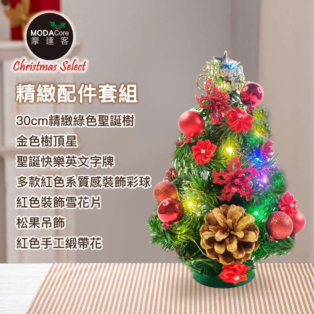 迷你裝飾綠色聖誕樹 免組裝 銀松果糖果球色系 綠色 1呎 30cm