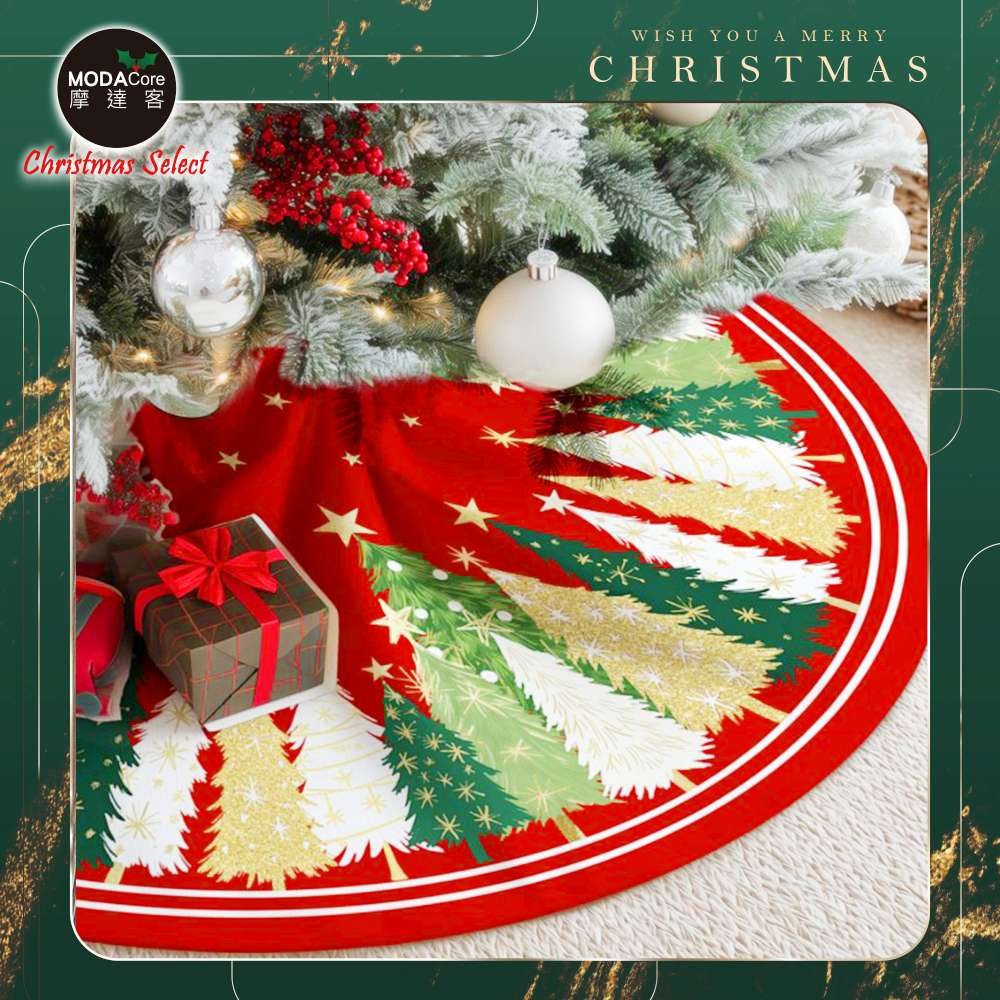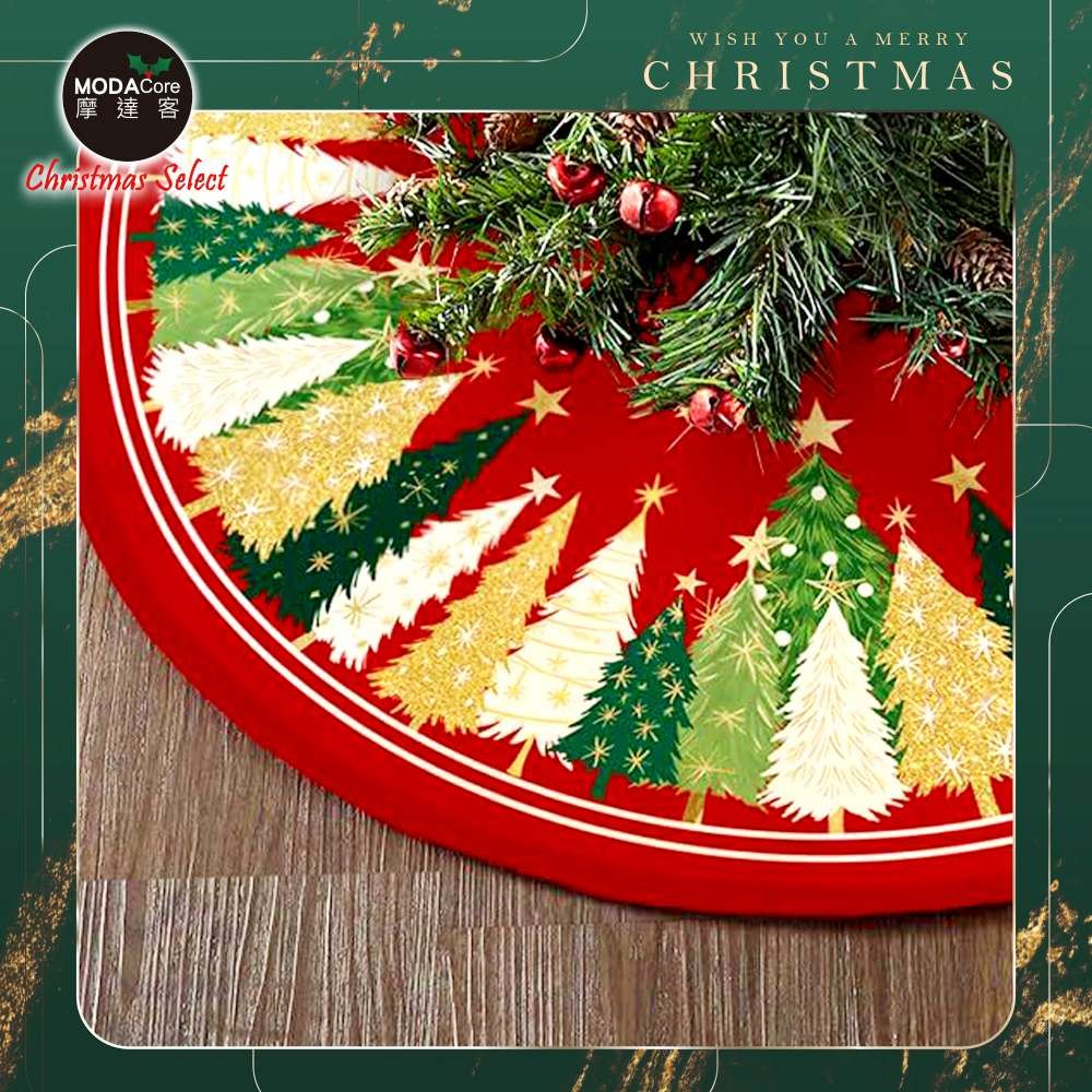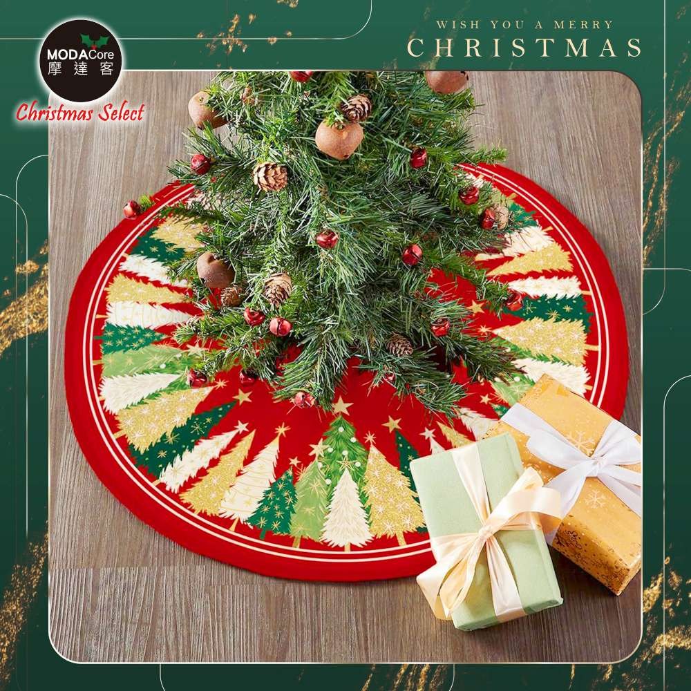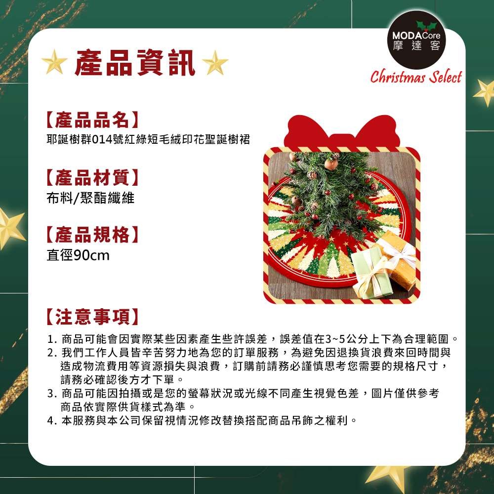 摩達客 耶誕樹裙 014號紅綠短毛絨印花聖誕樹裙90cm 聖誕樹裝飾底墊