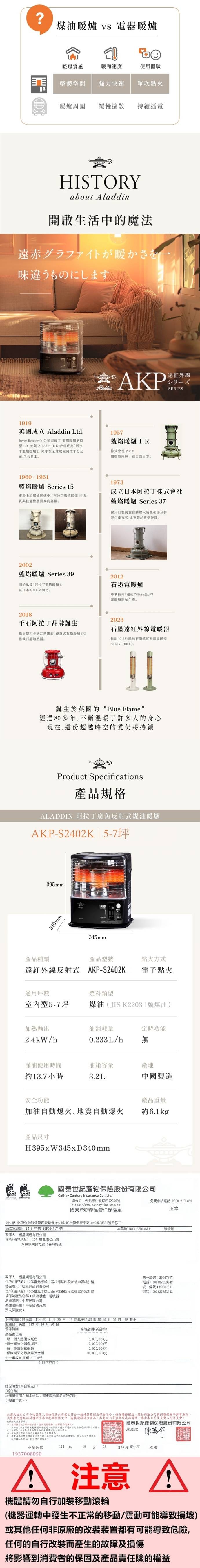 【日本Aladdin 阿拉丁】適用5-7坪 煤油爐/煤油暖爐 (AKP-S2402K)