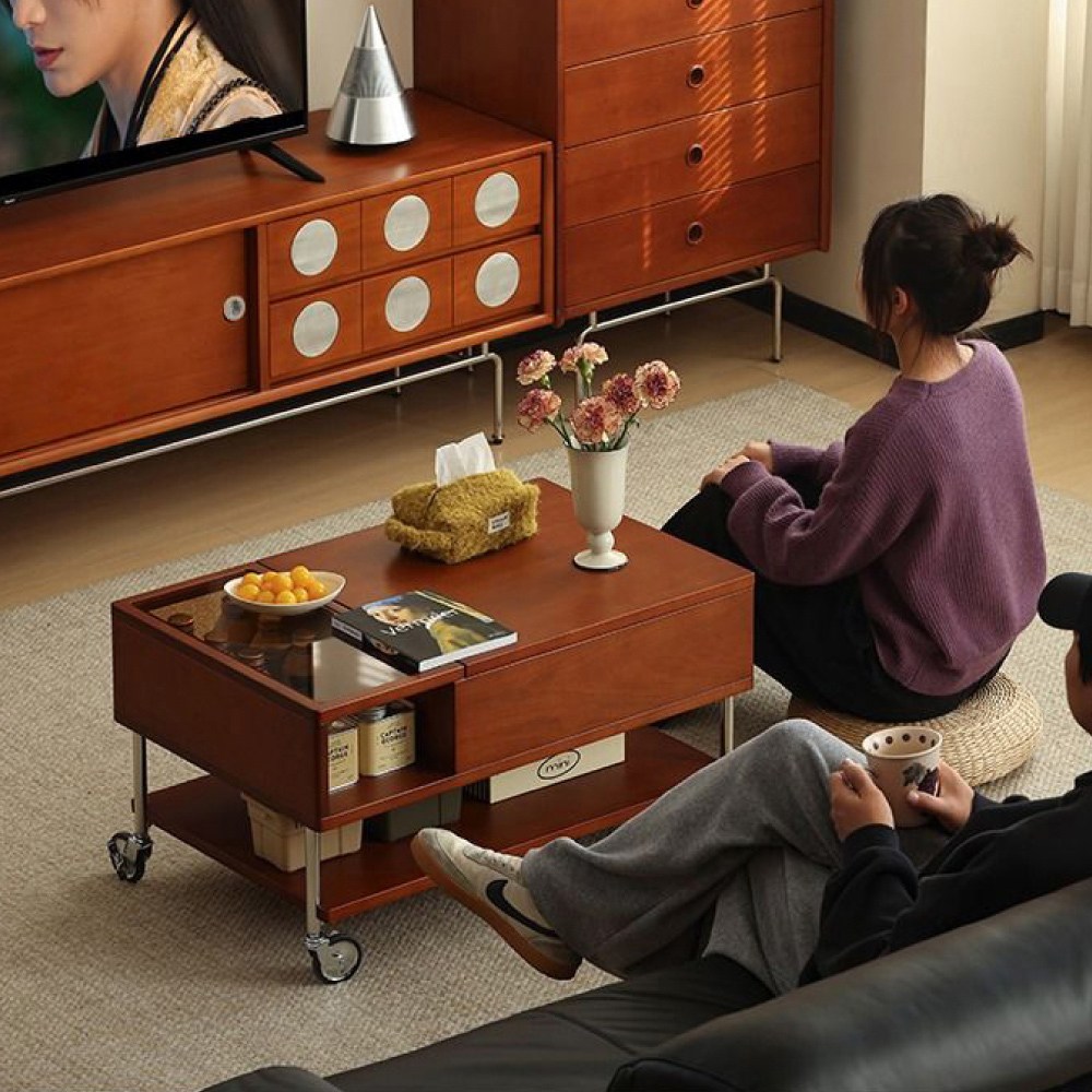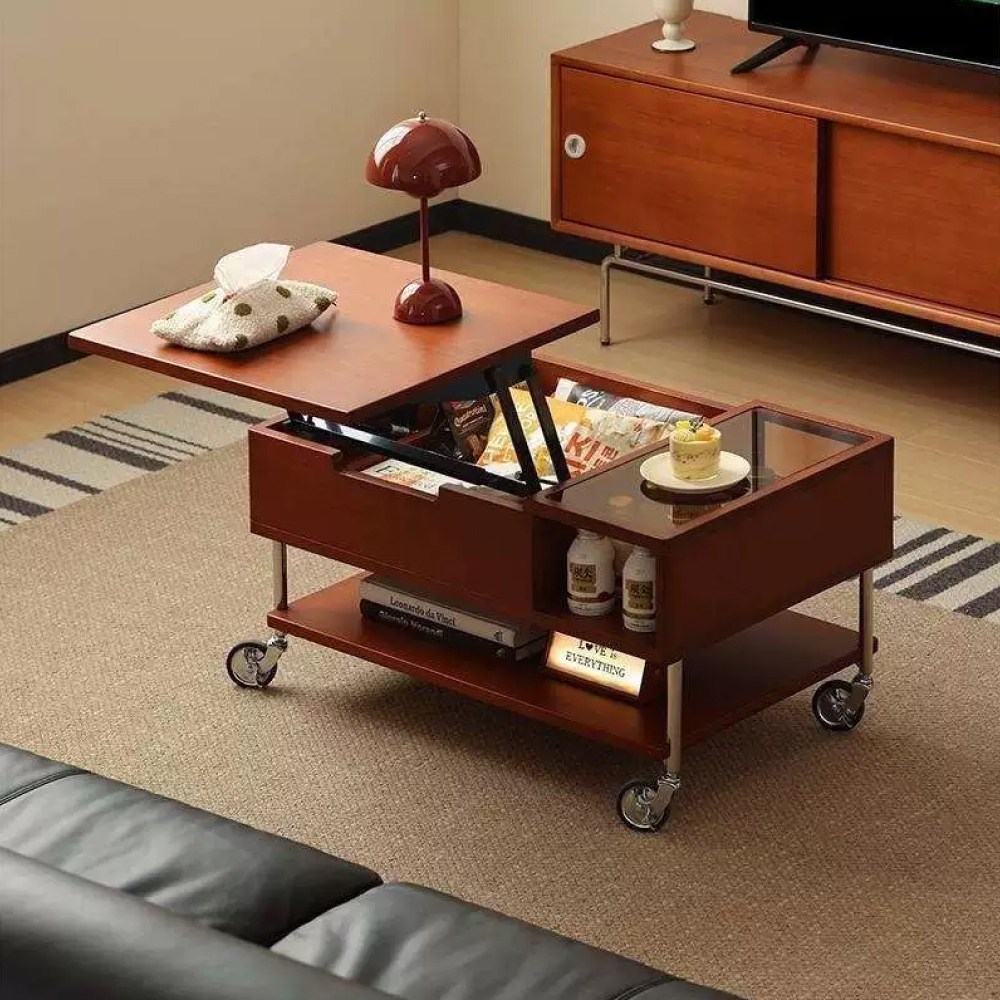 hoi!林氏木業北歐簡約二抽儲物伸縮岩板茶几組合 UM4L