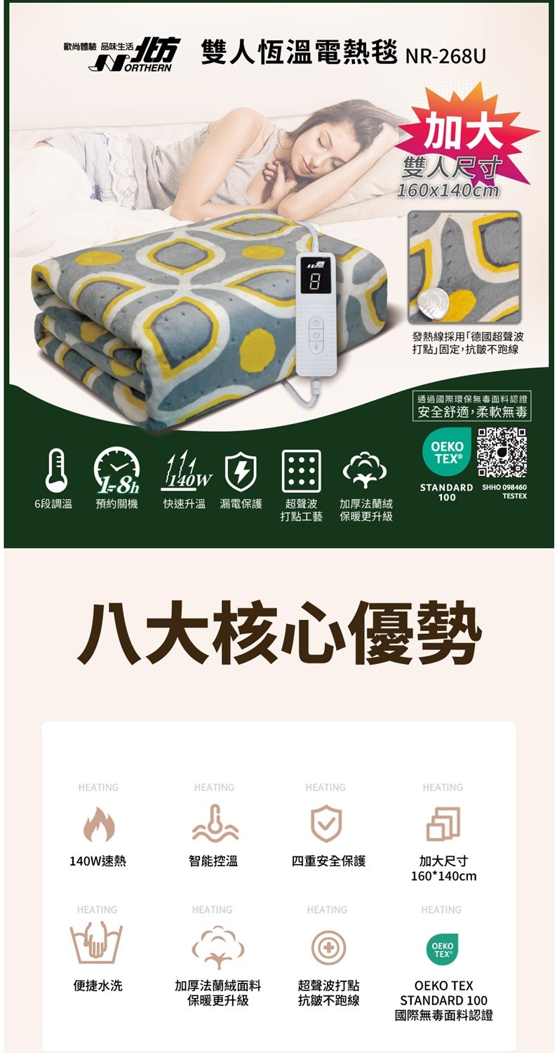 北方 雙人恆溫電熱毯 NR-268U