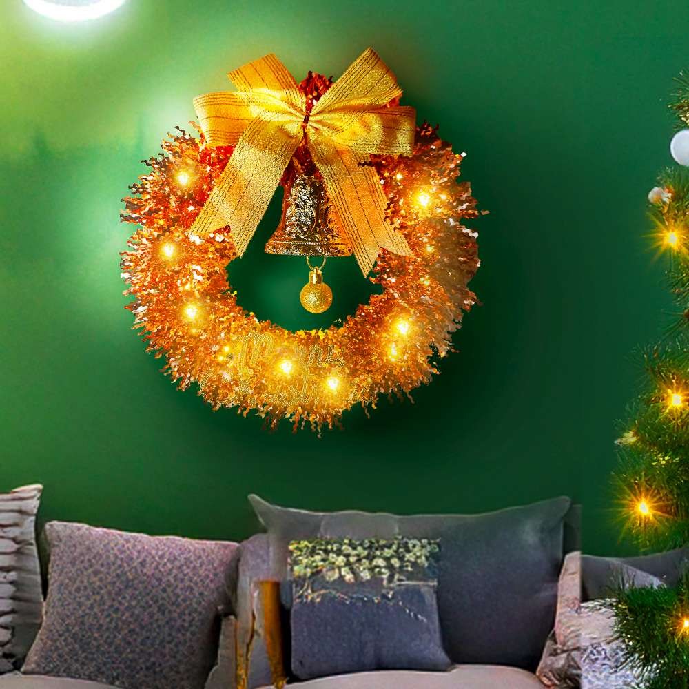 聖誕花環 聖誕花圈 聖誕裝飾 北歐45cm聖誕花環門飾掛飾聖誕裝飾圈聖誕節裝飾品(帶燈)