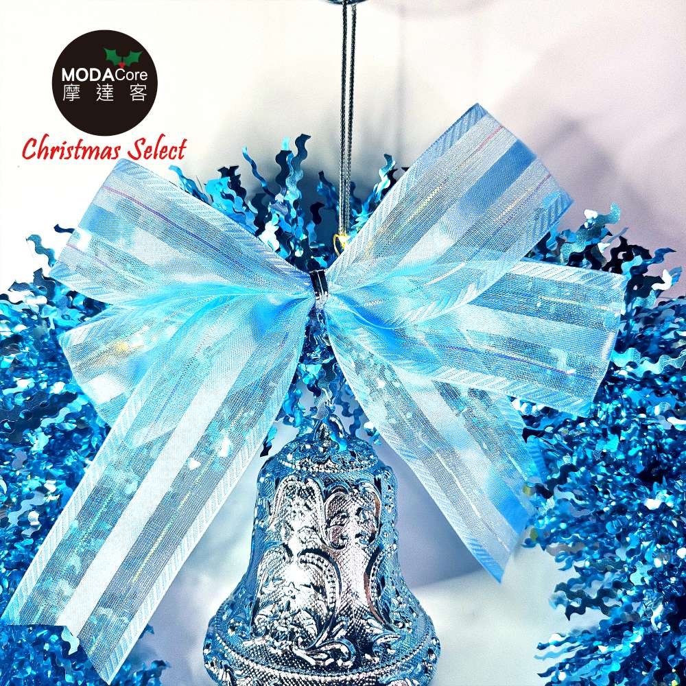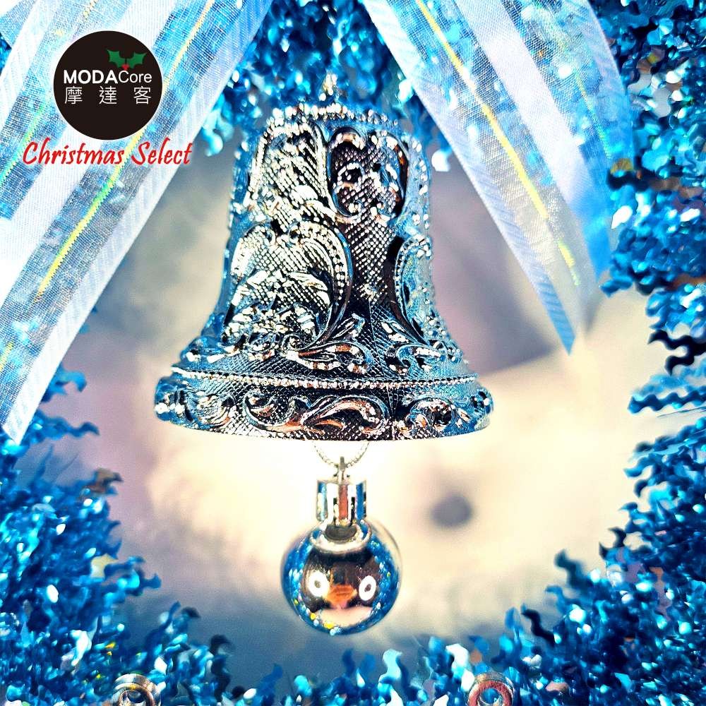 【摩達客】4吋雙花鐘吊飾-藍銀色