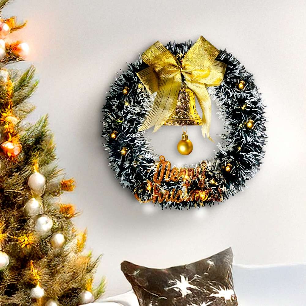 Vanibaby - 24吋60cm 聖誕花圈 聖誕節裝飾 (含50頭LED燈)