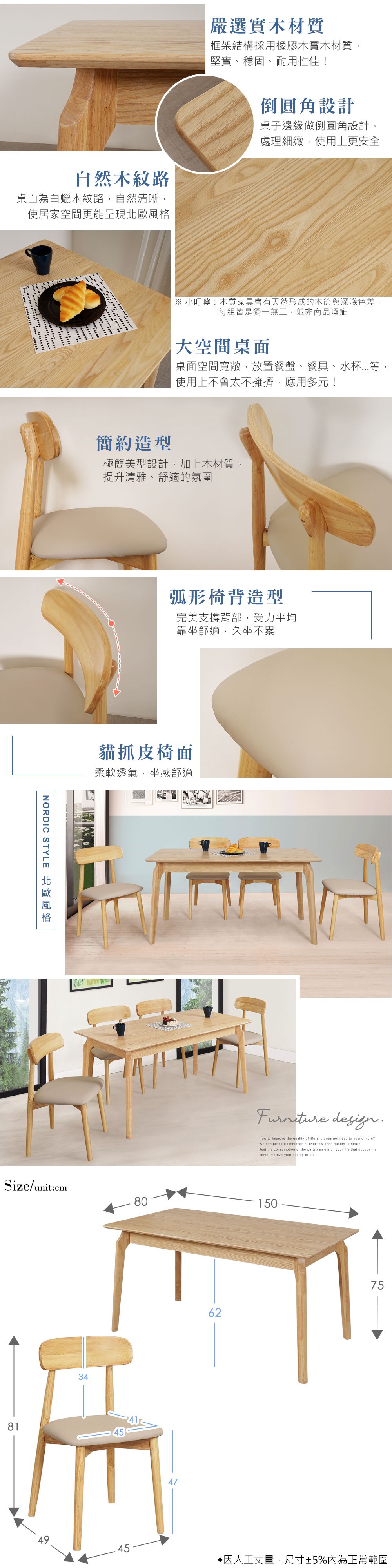 直人木業-FUJIBO日系山毛櫸伸縮餐桌一桌四椅組120-150公分(搭配UNA餐椅四張)