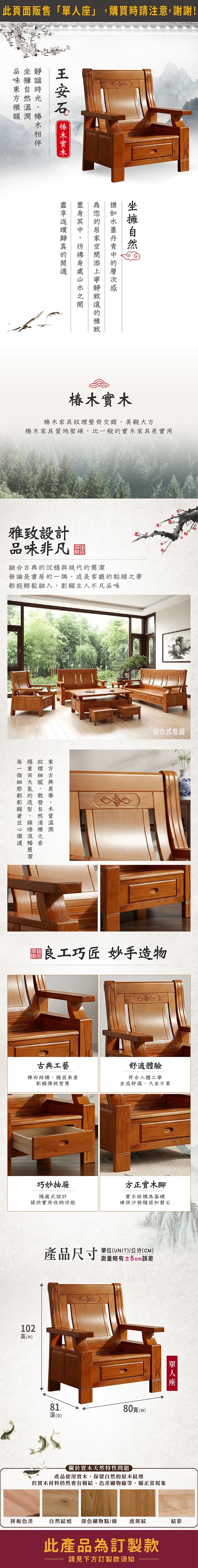 文創集 海灣樟木色單人座柚木實木椅(底部抽屜可收納)-80x75x97cm免組