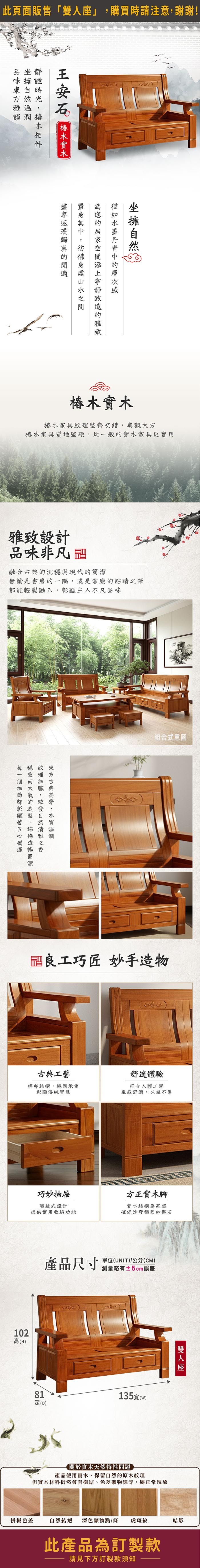 ASSARI-王安石全實木雙人座沙發